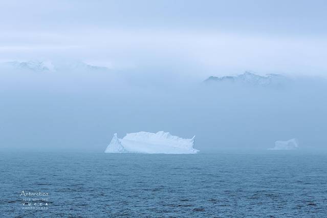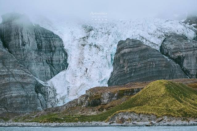 另外一个很大的遗憾是,由于水流湍急无法过河,我们没能够登陆南乔治亚的St Andrews Bay,只能坐在冲锋舟上隔雾远望一片鹅山鹅海,那是王企鹅最大的繁殖地。