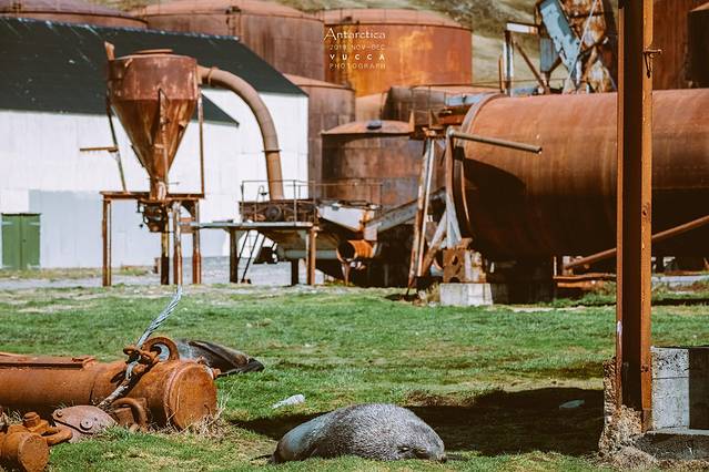 人们正试图把一切归还给野生动物,沉寂的锅炉、烟囱和油罐间,到处可见南极海狗们在休息或者躲猫猫。