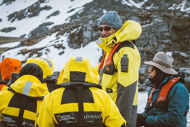 这次行程,她和老公Kris担任探险队员,探险队并不隶属于游轮公司,他们来自世界各地,协同制定浏览路线,负责游客登陆相关的工作,还会在航行中分享生物地理知识或探险经历,是件富有激情的苦差。