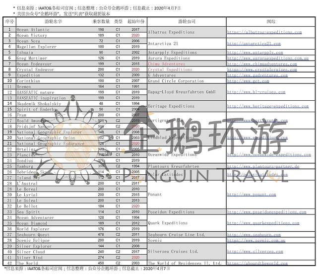 南极旅游季从10月末到次年3月中,我原计划先做好签证及其它准备,然后等到Last Minute再捡一艘载客100人以内、走三岛路线、价格便宜的探险船,之所以希望人少,主要因为IAATO(南极旅游组织协会)有规定:在南极的每个登陆地点一次仅允许不超过100人同时登陆。