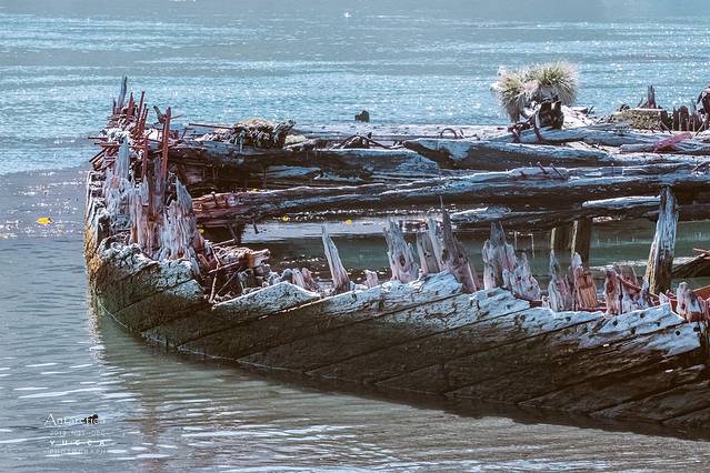 这条搁浅的船叫海燕号Petrel,于一九二八年建造于挪威奥斯陆,配有鱼叉和甲板。