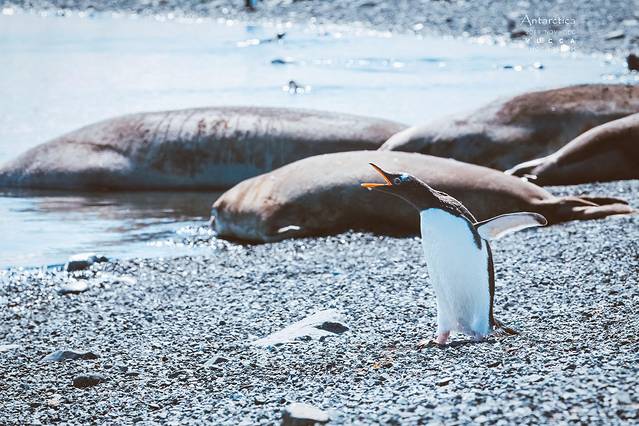 由于海水不深,食物链底端的磷虾资源富饶,南乔治亚被誉为动物的天堂,这里比福克兰只高3个纬度,但是气温明显降低了许多,全年平均1.8度,夏天5度,长140宽20公里的面积是一块未被封冻的大陆。对于企鹅们来说,这里的温度还有点热。