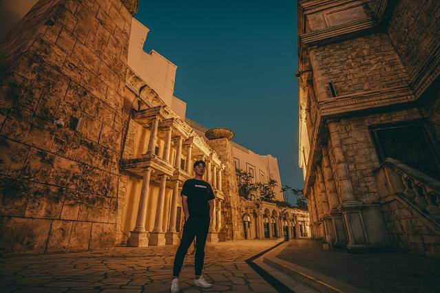 我一个人漫步在斗兽场里, 夜晚的黄色灯光映射在黄色的墙面上,暗蓝色的天空。六点钟的渔人码头是最美的样子。我来的时候,其实也有几个小女孩在这里拍摄,但谁也不影响谁,画面可以空无一人,这不是旅行者最喜欢的样子吗?