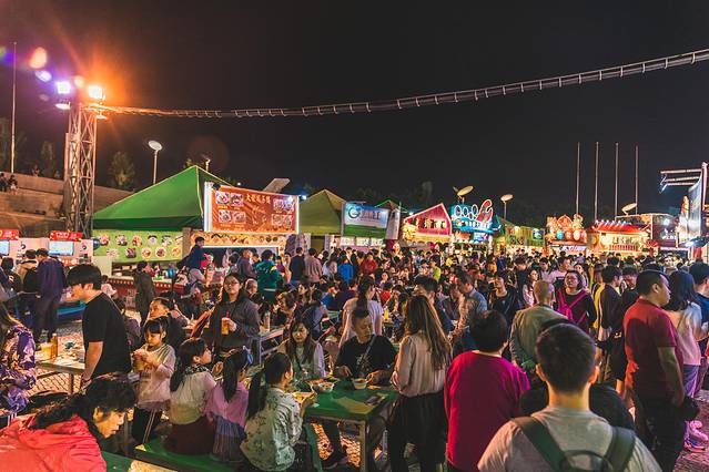 十一月的澳门还有美食节,大概2个多星期的样子,位于澳门旅游塔下,西湖湾广场。我不知道每年是不是都在这里举办,每天这里都是人潮拥挤,本地人、周围城市或者远道而来的游客都会来这里感受一下来自世界各地的美食。