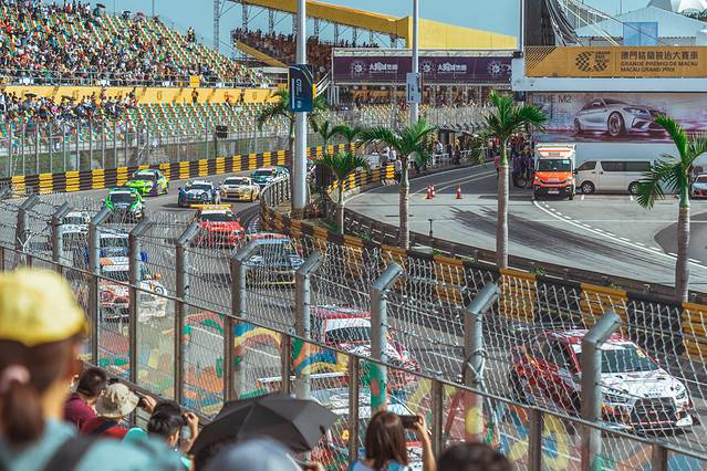 这一天早上很热,比之前几天在澳门还热。但天气不错,晴空万里,画面很舒服。大概10点的时候,房车比赛开始,这些比赛大约都是一小时的时间,围着赛道10-12圈,赛道是澳门半岛的一些路上,这几天都被封路了,到晚上7点 有些路段才可以通行。