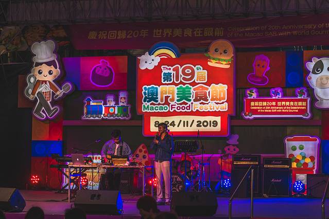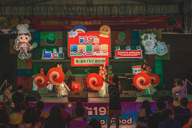 美食节现场就在澳门标志性建筑澳门旅游塔的下面。如果想看澳门全景的话,可以卖门票进入上去哦。除了美食,还有许多表演,外国的小哥哥,日本的小姐姐都有,如果有你喜欢的曲子和舞蹈,不妨驻足一下,欣赏他们的表演吧。