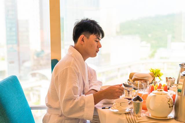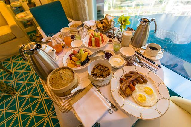 酒店的早上非常丰盛,床头有一个菜单,自己可以选择日系、欧美、亚洲、或者营养类、水果类的早餐,然后选择送餐时间,在凌晨三点之前挂在房门上,第二天早上服务员就会推着小桌子,准时来敲门为你献上丰盛的早餐啦,当然分量也是足足的,我都吃不掉。