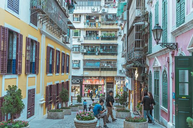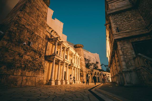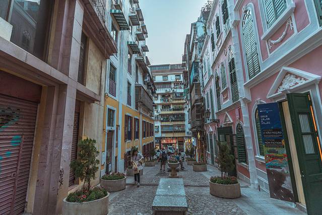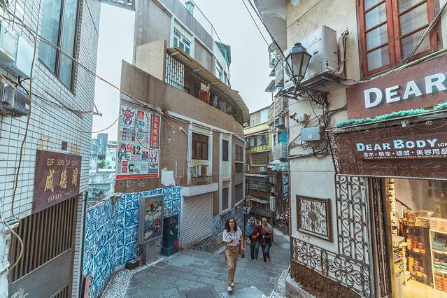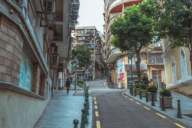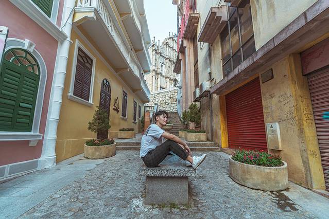 我最喜欢澳门的一个区域是位于澳门半岛中西部的大三巴文化遗址群。这里的街头弄巷非常安静,建筑年代久远,这里也有许多山坡,房子建造在山坡上,让我想起重庆的样子。