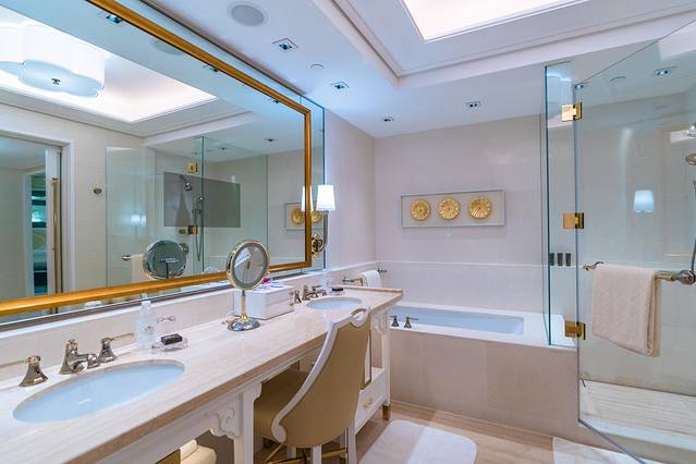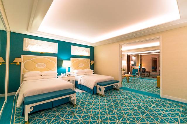 我入住是蒂芙尼蓝的房间,听说这里的房型有4种,颜色也有4种。这种蒂芙尼蓝非常适合拍照,也在各种媒体平台比较火。房间的面积很大很大,有客厅,有卧室。窗外永利皇宫的喷泉池,从楼上看喷泉的角度,更壮观。
