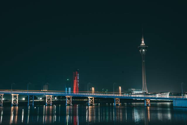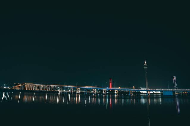我喜欢澳门的文艺和复古,夜幕降临的时候,这座奢华的城市里的某些角落,也是异常宁静。澳门本岛有3座桥,夜晚的时候灯光璀璨,线条柔和,远处的澳门旅游塔遥相呼应,这样的澳门又怎么能不喜欢呢?