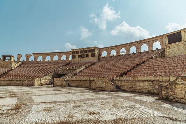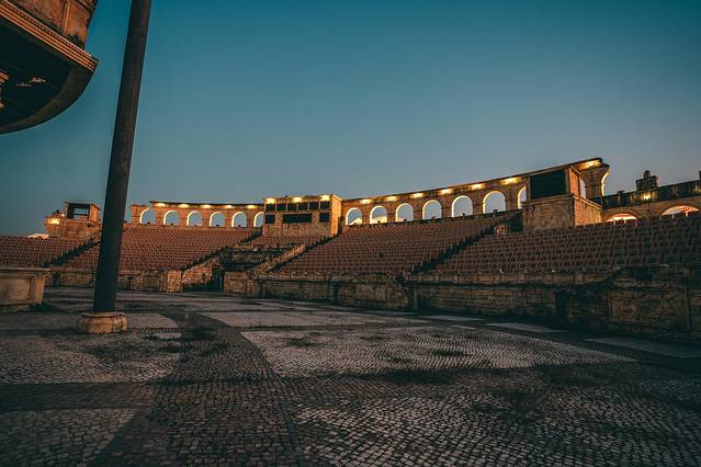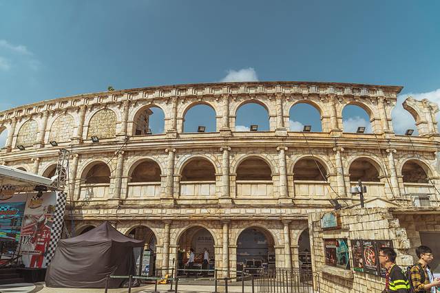 斗兽场里黄色的建筑,和罗马的非常相似。面积比罗马斗兽场小一点点,我去过罗马,当然如果在这里拍摄出假装在罗马的样子,别人也是分辨不出来的。