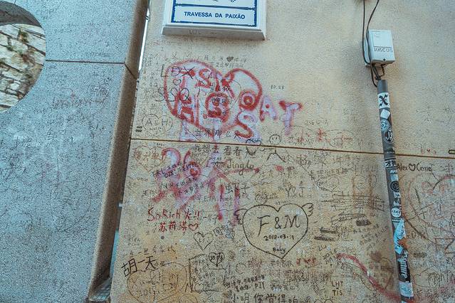 这个区域比较知名的景点有恋爱巷、大三巴牌坊、炮台、澳门博物馆等等,还有许多不知名的巷子但也很复古文艺。我漫步在这些非常有感觉的安静箱子里,来来往往的游客很少,更多的是生活在这里的老人们,慢慢的我走到了恋爱巷。