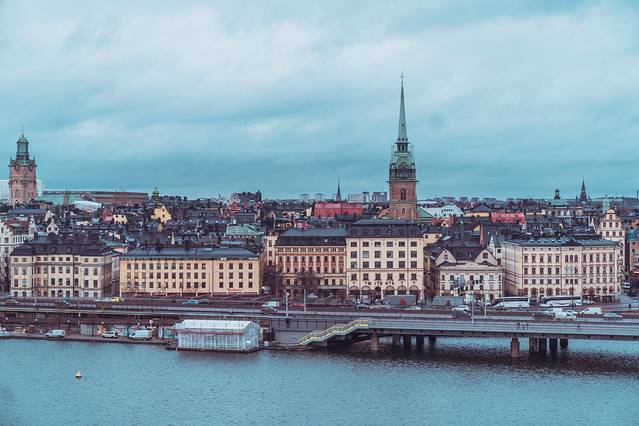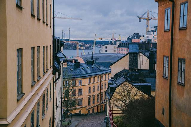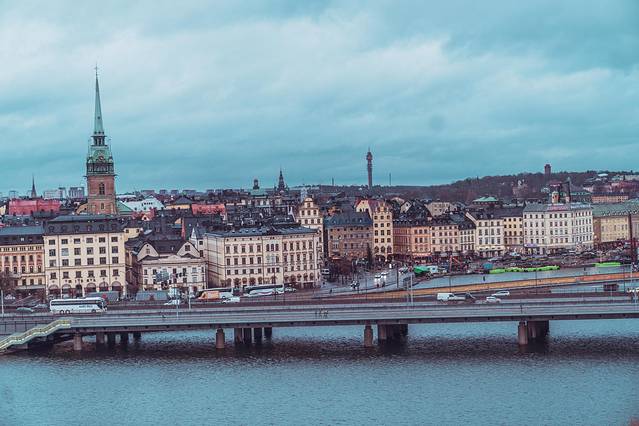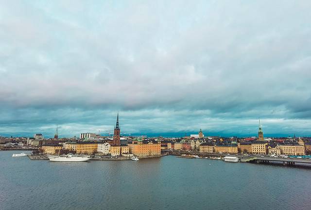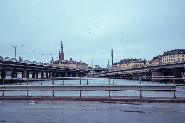 从这里一直往湖边走,就可以走到一个观景台。我也没有做过攻略,只是觉得这个位置看整个城市肯定很棒,所以瞎找就找到了这里。因为高度,俯瞰对岸建筑和车流,这才是真正的斯德哥尔摩明信片。许多冰箱贴和明信片都是从这拍摄的,建筑是壮观。