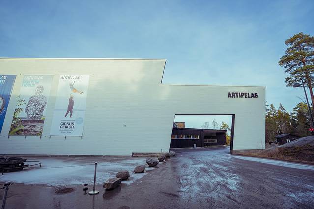 大约开车30分钟,就来到了Artipelag美术馆,门口是一个非常简约大气的门槛,这也非常符合瑞典极简设计的风格。Artipelag是一个集艺术、美食、活动为一体的艺术馆。