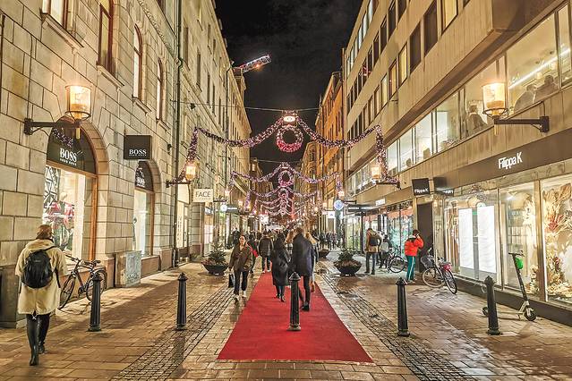 我漫步名品街头,周围都布置了许多圣诞元素的东西,圣诞气氛非常浓烈了。毕竟隔壁的芬兰就是圣诞老人的国度,瑞典的气氛自然不会差到哪里。