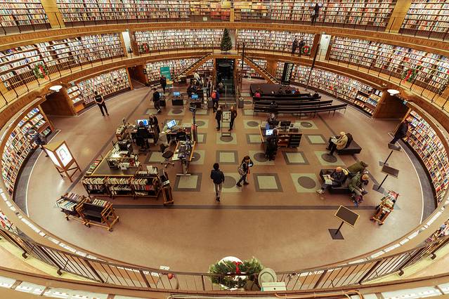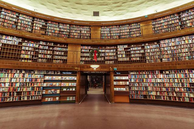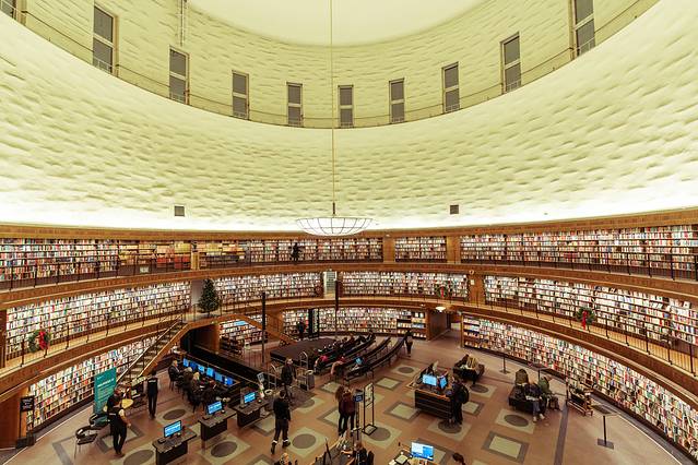 欧洲的建筑真的是奇形怪状,这样的图书馆设计很好看,也节约空间,把所有的书籍都沿着墙壁摆放,中间看书,安安静静的看书也不会打扰到许多人,这里的独特环境让这里也成为一个拍照的好地方,来斯德哥尔摩的话,可以拿出1个小时时间来这里逛逛、拍拍照。