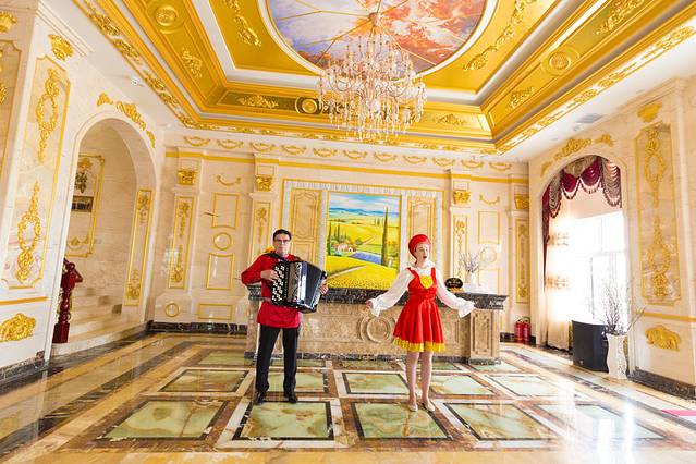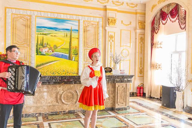 我们到达丽丽娅庄园的时候,有一个俄罗斯的小姐姐为我们唱歌,欢迎我们的到来,旁边的俄罗斯大叔一脸严肃的表演着乐曲,当然我们的注意力还是漂亮的小姐姐身上。