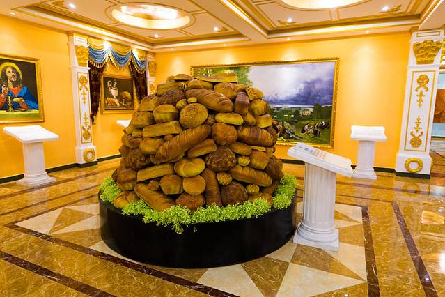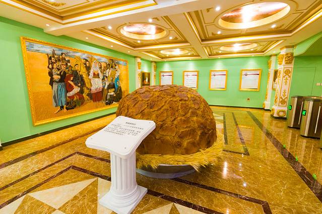 看完了表演,我们进入庄园主楼看见的第一个东西就是一个巨大的列巴,据说列巴在俄罗斯有着崇高的象征意义,是东正教的国餐,代表着友好、希望、吉祥、喜庆的意思。