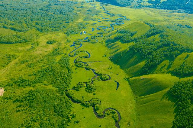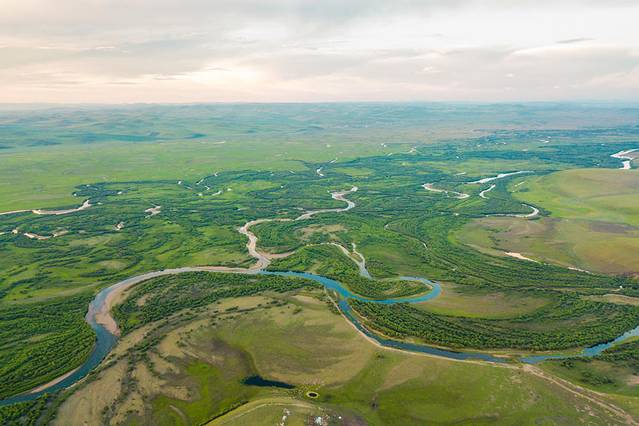 从江南到草原,从上海到呼伦贝尔。飞机上远眺呼伦贝尔,只看见一片绿油油的草原和草原上弯弯曲曲的河流,这是我第一次看见内蒙的模样,也揭开我对内蒙这个地方的好奇和神秘面纱。