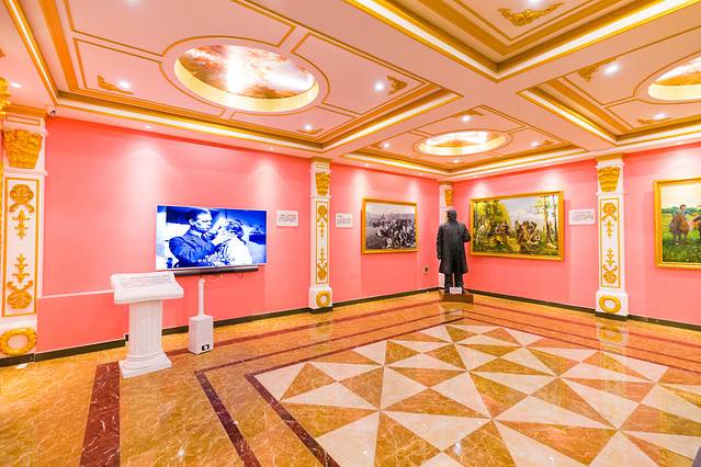 整个展览大厅里装修的富丽堂皇,都是俄罗斯特色的建筑装修风格,房间里陈列着各种列巴的造型、历史和相关的人物,以及我们的创始人丽丽娅的画像等等。