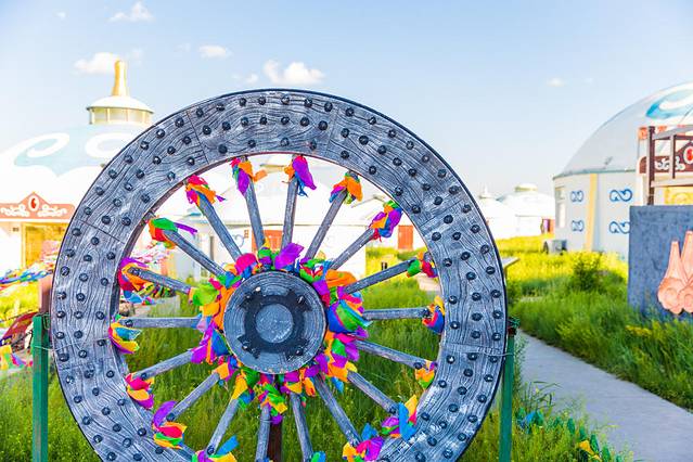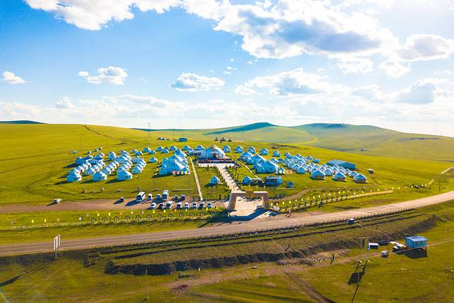 这里的风光是真的不错,我被这里许多内蒙特色的元素所吸引,五颜六色的彩带,圆圆的蒙古包和尖顶,这才是我想象中的内蒙模样。