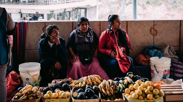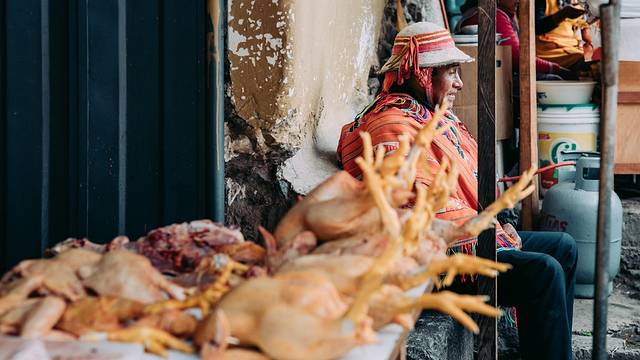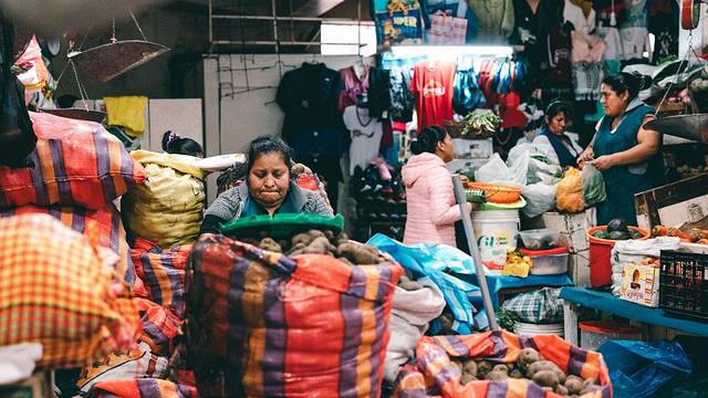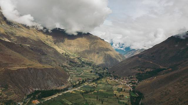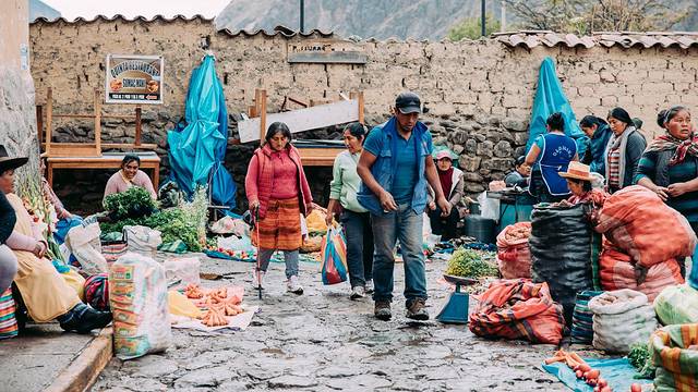 雾气飘飘,萦绕在山腰间,宁静的小村庄坐落在山脚下,颇有点世外桃源的意味。小城里也有热闹的集市,在秘鲁,马铃薯是非常重要的经济作物,听说这里的马铃薯有3000多种颜色,繁多的土豆品种,凝结着印加祖先的智慧,也是印加人向历史,交出的满意答卷。
