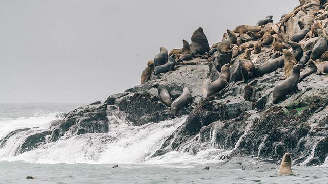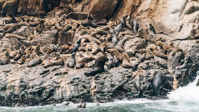 之前看BBC的纪录片,得知在秘鲁的海岸线上生活了50万只鸬鹚,占了这个品种的1/4。到了利马自然不能错过鸟岛,从码头出海不远便能看到这漫天飞翔的鸬鹚还有企鹅们,而另一处的海狮多到出乎我的意料,差不多是我此生看到的海狮的总和。要不是天气不给力,完全可以下海同它们嬉戏一番。
