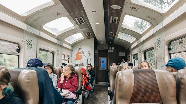 火车的车厢出人意料地舒适,居然还是有天窗的,可以360度欣赏到窗外的景色。大概这里是欧美人中的热门旅行地,车厢中大多都是金发碧眼的背包客,差点以为自己还在欧洲。