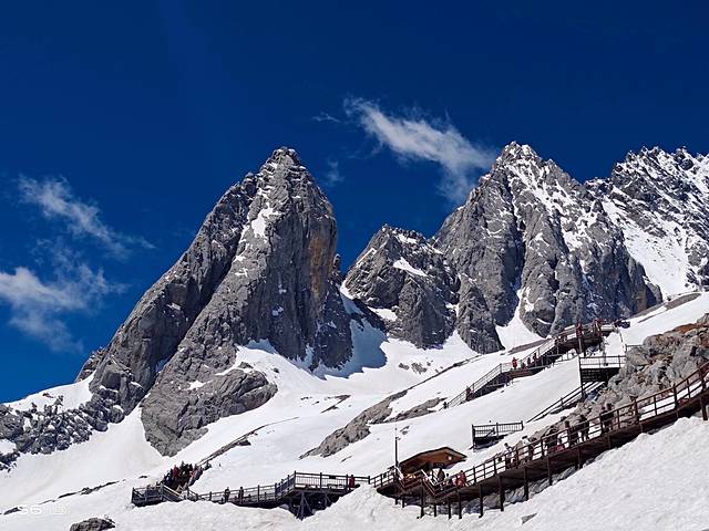 玉龙雪山的冬,是巍峨且壮观的。没有一个人会错过玉龙雪山,连绵起伏的十三座群山相接,这座海拔五千多米不曾有人征服处女峰,也是国内唯一允许被攀登的雪山。