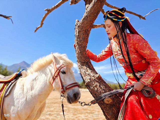 很多人都以为丽江一年只有两个季节——冬季和大约在冬季。殊不知,秋天的丽江在这两个季节的夹缝中“C位出道”,竟也绚烂如画,多彩迷人。鲜艳的民族服饰,在蓝天、雪山、草甸的衬托下,更有韵味。
