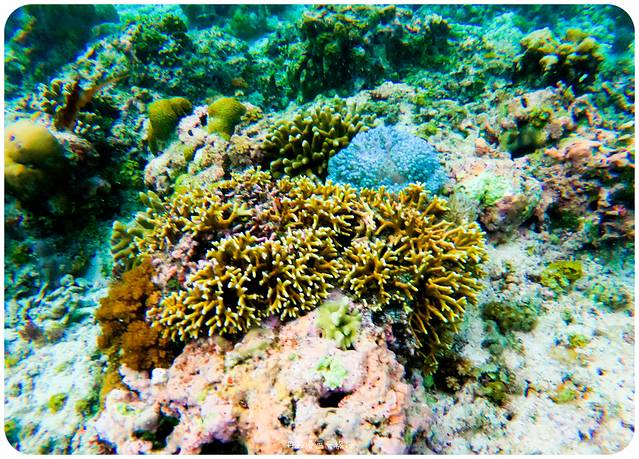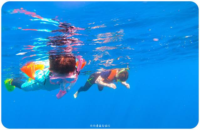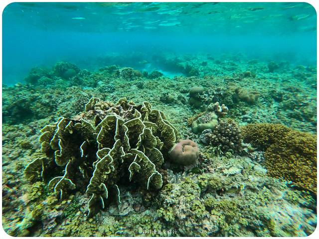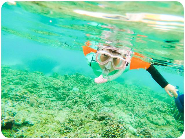 靠近沙滩部分的水很浅,脚可以够着地。珊瑚很多,所以再次提醒,浮潜的防晒服和袜套,必备!▼