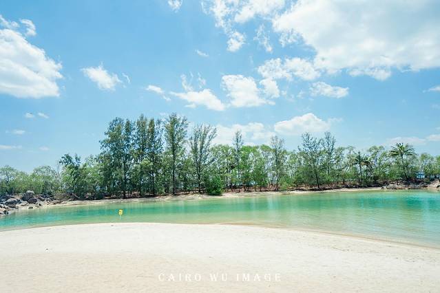 圣淘沙滑车项目对面沿着树道望出去是个不大的小海湾。