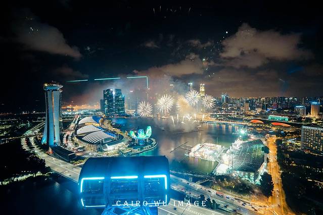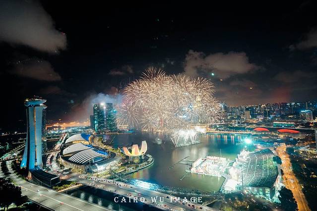 最开始以为他们初五迎财神举办的活动,因为广场上有个巨大的财神爷。后来才知道,为纪念新加坡开埠200周年,他们邀请多个国家的烟火特效师,呈献33年来规模最盛大的烟火汇演。为期八天的春到河畔,每晚都将呈现总长至少三分钟的烟火汇演。而在其中四天的特别汇演之夜,还将特设三个时段,烟火燃放时间总长达到12分钟。而我们刚好遇见的就是最后一天的特别汇演之夜,放了12分钟的烟火!!!