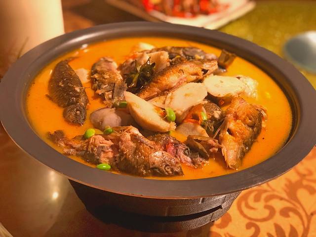 这道也是鱼,不过加了芋头,很特别的吃法哦~底下有小火,慢慢熬出来的汤汁有芋头的香味。