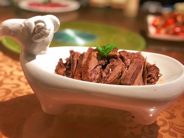 接着上菜就是我最爱的熏鹅!感觉熏鹅是比咸水鸭更好吃的食物啦,虽然我也很喜欢本土的咸水鸭,但是鹅肉更紧实一些,熏鹅是带点辣,适合我这种无辣不欢星人~