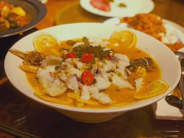 食山夷私房菜/原食山夷私房菜,现改为食山夷创意融合菜,所以呢也有许多创意菜,不仅仅是闽北菜系啦~ 这道 酸笋柠檬鱼的味道真的很酸爽,相信厦门的小伙伴都吃过厦门酸笋面,也是算黑暗料理,酸笋呢属于爱的人很爱,不爱的人真的是闻不得啊!这道鱼的汤汁真的非常酸加一点点辣,喝下去真的有开胃效果,鱼肉也是相当嫩!