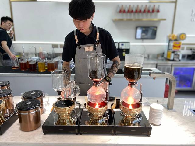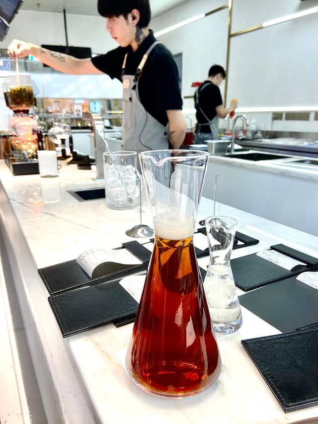 际渊的茶有何特别之处呢?在于首创的虹吸式萃茶手法,手工冲调,融合了浸泡法和过滤法,为的是,让人们观察到茶饮的制作过程,包括从茶颜色的逐层变化,到嗅觉、味觉的品尝,能够以多重的感官体验中更清晰了解到茶的本身。
