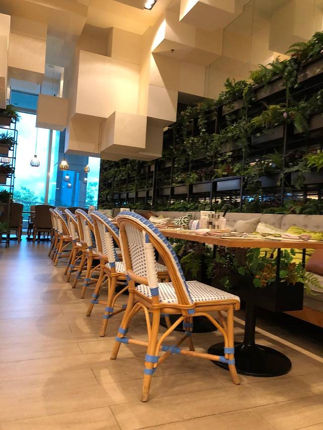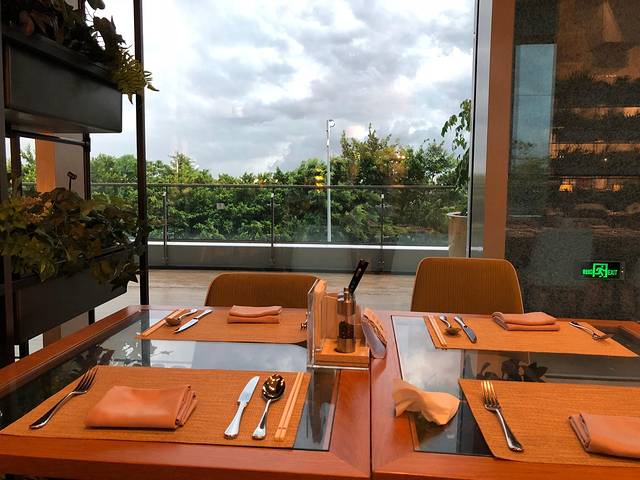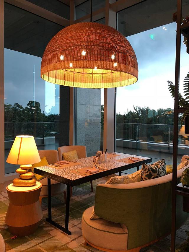 整个馨石堂餐厅大部分区域以落地玻璃窗环绕,阳光明亮通透,在享用美味同时还能欣赏风景以舒缓心情。餐厅划分多个区域,不同区域的餐桌,椅子风格各有千秋,比如这个竹编椅就颇有亚热带度假风~