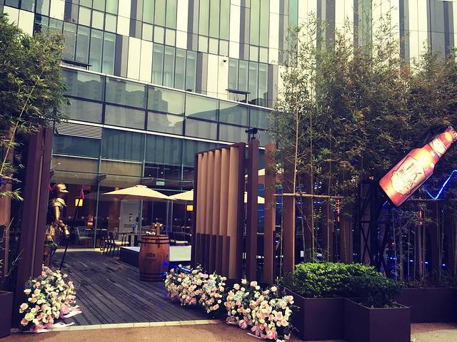 穿过酒店的自助餐厅就来到了户外啤酒花园!