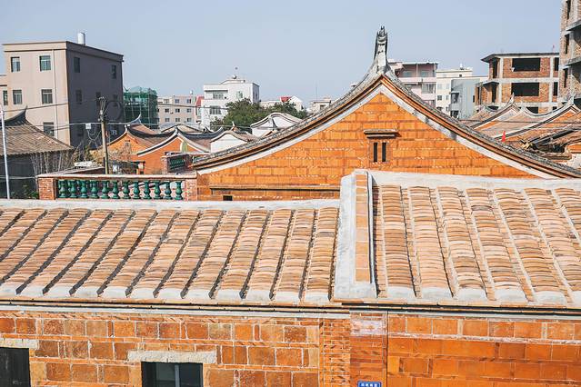 大嶝岛位于厦门岛以东,与大金门岛隔海相望,最近的距离仅仅4公里。大嶝岛在八二三炮战中发挥了巨大的作用,如今硝烟散去,长期作为“前线”的大嶝岛虽没有赶上改革开放后的现代高楼潮,却也使得成群的古民居得以保留,这种被誉为红砖古厝的闽南民居,造型精美,用料独特,功能丰富,极具观赏、艺术及研究价值。
