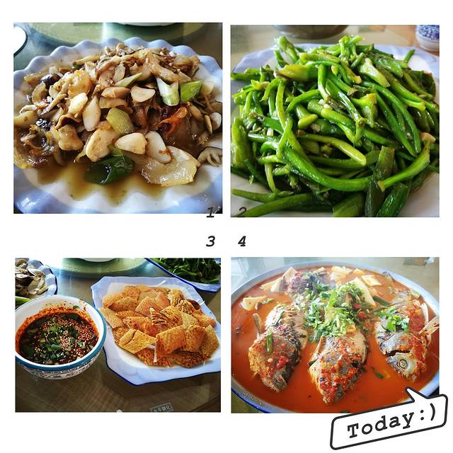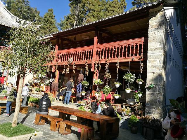 中午在喜洲古镇吃的饭,包车师傅胖哥带去的。价格和味道都还行。野生菌炒腊肉+炒水性杨花+白族特色生猪皮+白族的一个什么酸辣鱼。分量依然超级大。我们两男两女,这四个菜依然没吃完捂脸小蜂好绝望。