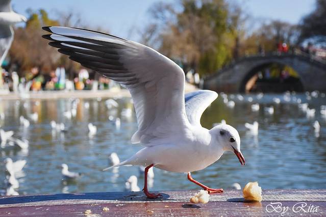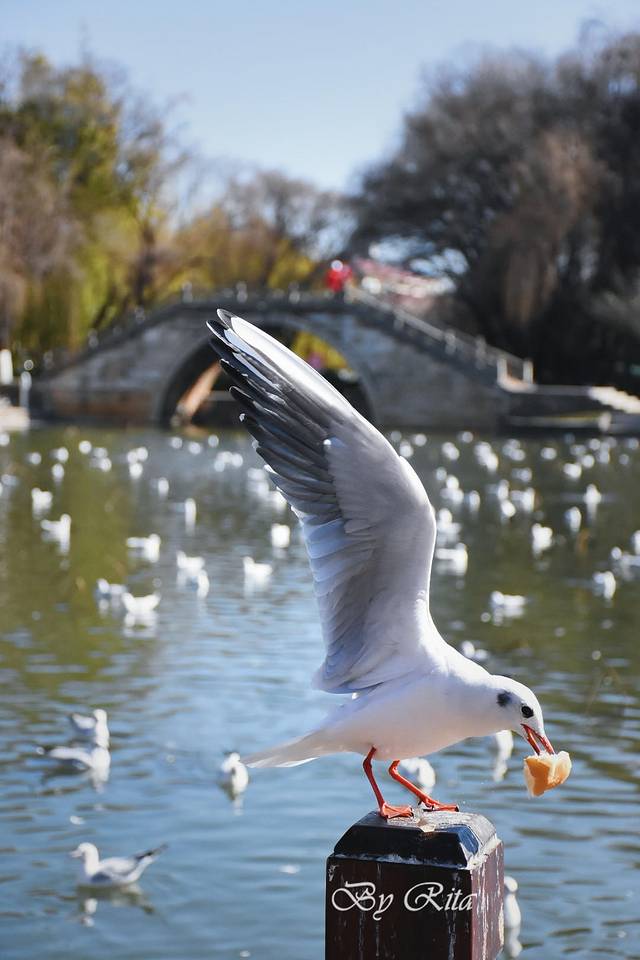 吃完后就近去了大观楼公园看海鸥。这里的海鸥比小普陀的更亲人~~