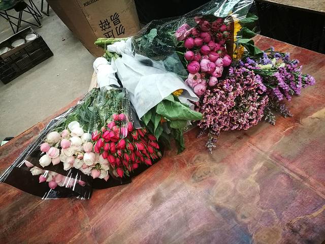 摊了一桌子,又便宜又好看的花,我俩真的抑制不住买买买的心~