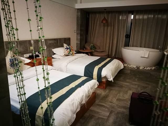 房间标间+浴缸,外面有个阳台。