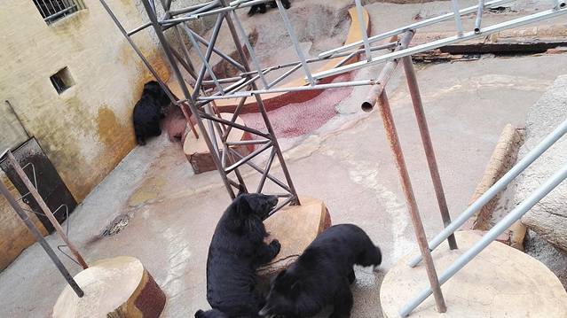 路上还可以看到养熊的地方,里面有几头熊,伸手招呼一下,热情得好像要跳出来。