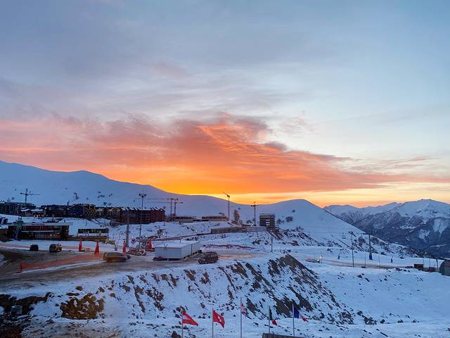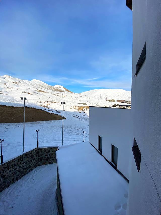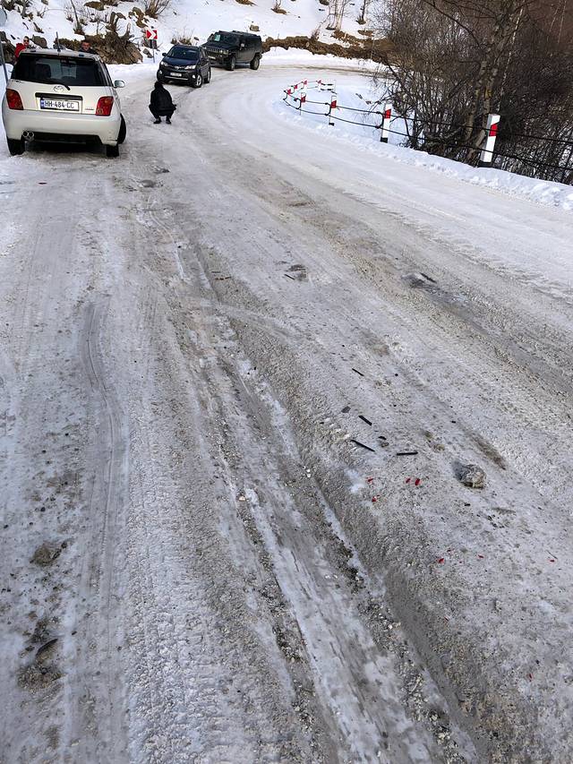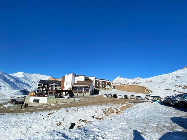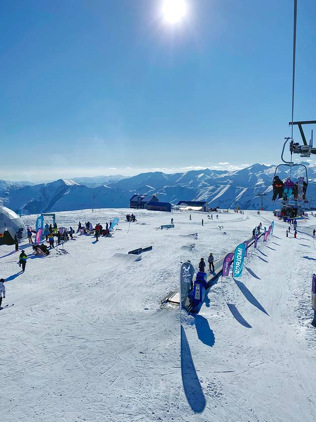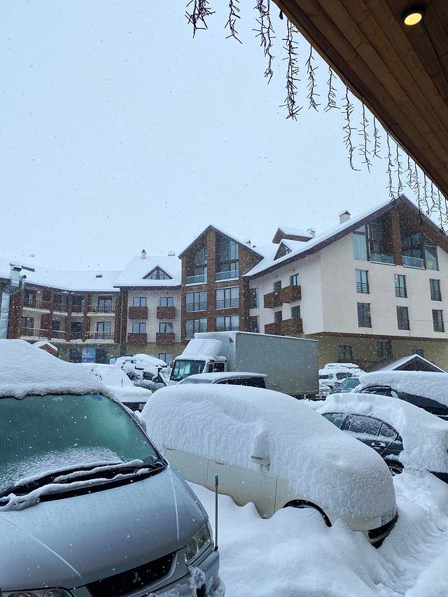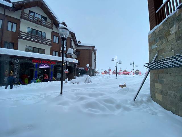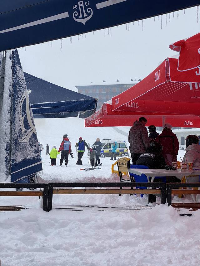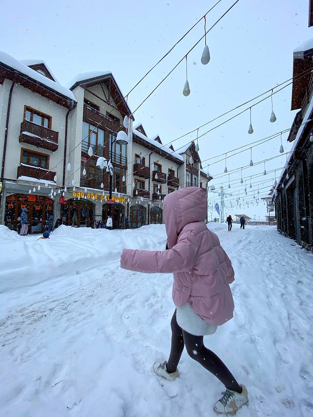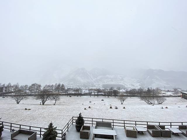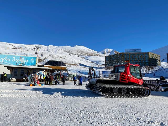 格鲁吉亚碰上多年一遇的大暖冬,雪道开放的比往年都晚,12月下旬才刚刚下了场大雪,一直到春节都没有再下过雪,雪道上都已经露出了石头,酒店门口的地面也都已经化成了冰块,非常滑