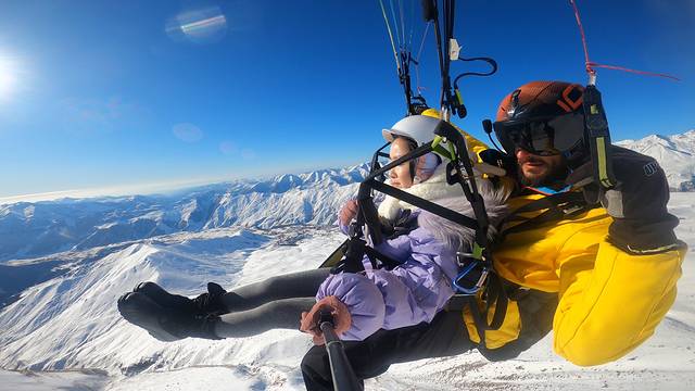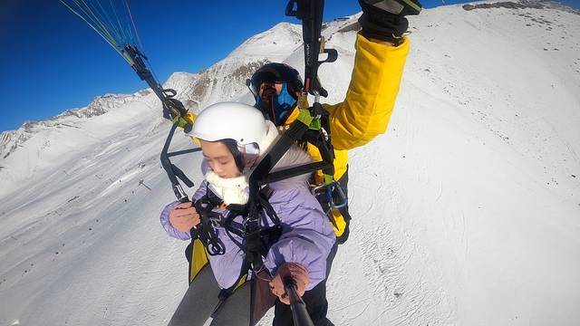 滑翔伞原本不在我的计划内,但因为雪质太糟糕,没有心情滑雪了,临时预定了滑翔伞