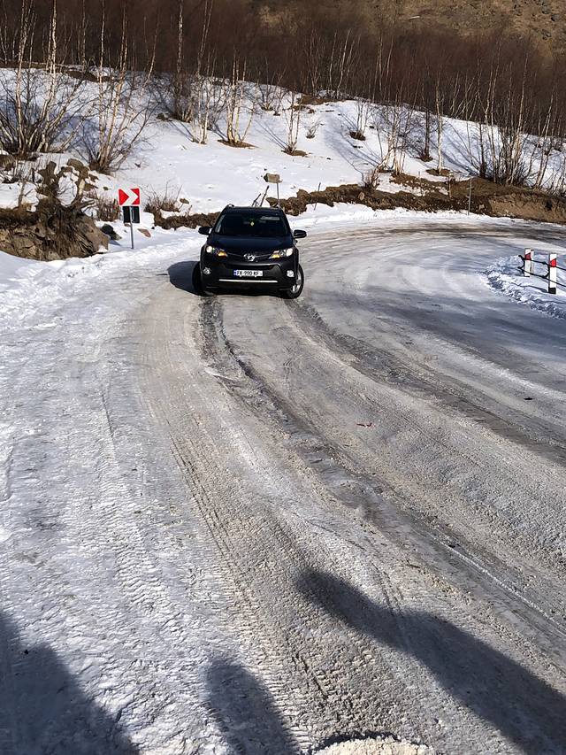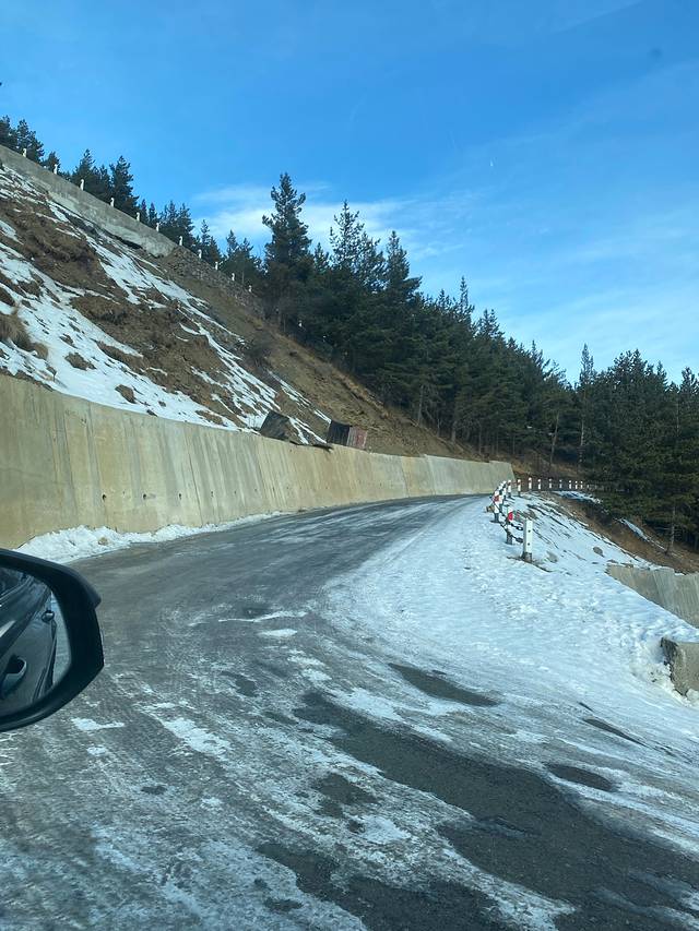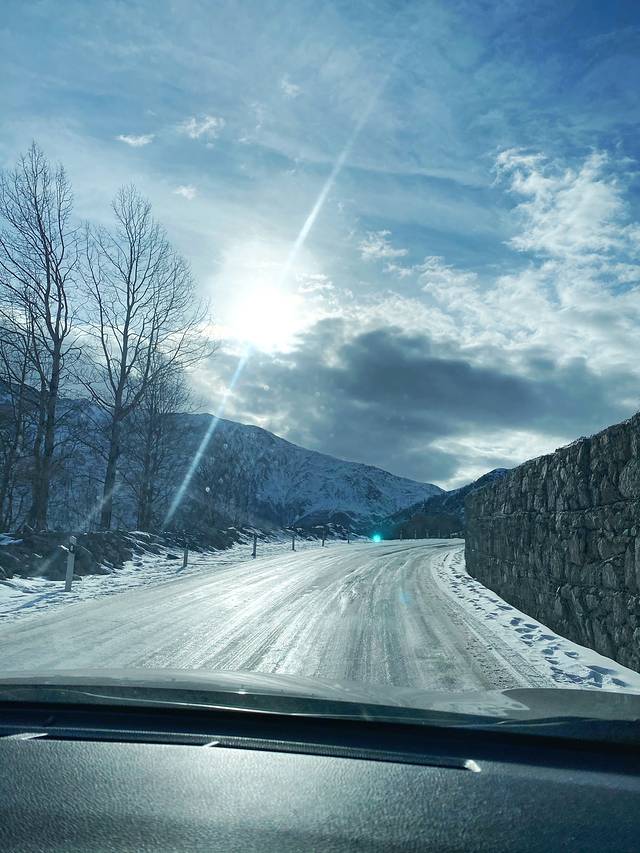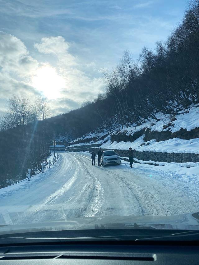 ▪️ 对于没有雪地自驾经验的人来讲这样的路的确不安全,很多人说租四驱车会不会好一点,其实我们租的这辆当时就开着四驱模式,并没有太大用处,而且非常费油,主要原因还是因为我们误以为那两条凹陷的道是被大家开出来的,以为更安全,所以才跟着往里开,实际遇到这种要避开!因为这是被其他车开久后温度升高遇上了低温而结的冰