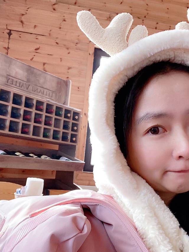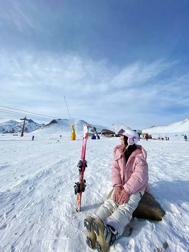 虽然冰渣太多,但还是想继续尝试,而且今天租到的雪板和我的衣服头盔雪镜都很配呀!
