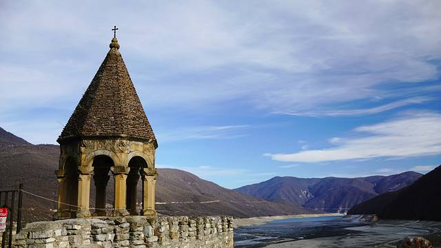 建在一座6000年没有喷发过的火山上的斯特潘茨明达圣三一教堂,悬崖之上,经历数次战火,见证了格鲁吉亚的历史变迁